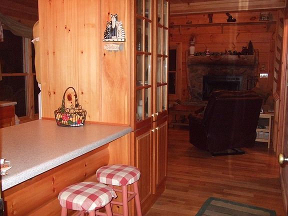 This cabin is a vacation rental. $125 to $145 Per Night or $2400 per month depending on availability.You've just found the perfect cabin for your North Georgia Mountain getaway. LOCATION, LOCATION, LOCATION!!!! Just Bearly is conveniently located in the middle between Blairsville and Young Harris, right off Hwy. 76. Very close to Brasstown Bald, Hiawassee, Helen and Blue Ridge. Lots of Hiking, Waterfalls and Beautiful Mountain Views. Paved Road community (no long dirt roads to deal with!).Complimentary Bottle of Wine upon arrival and complimentary coffee!The Master Bedroom is furnished with a King Size hand-crafted (by the owner) 4-poster wooden bed that blends beautifully with the log interior. The Master Bath has a two person jacuzzi tub. The Guest Room features a queen bed and private bathroom. Cute Bear Decor throughout the cabin (Just Bearly). The kid-friendly loft has a futon, bear rug and games for the smaller crowd. Bring some carrots! The horses below the cabin LOVE them! You will also enjoy hearing the Donkey (Rambler) neighbor next door. He's a hoot!This cabin sleeps eight people comfortably. If travelling with a baby, this cabin is for you! There is a full-size baby crib in the master bedroom closet. This cabin is equipped with everything you will need for a fabulous vacation.Just Bearly features a very large, wrap-around covered deck for your enjoyment even during weather (snow, rain, etc) including a charcoal grill. It has a washer and dryer, motion sensored exterior lighting and Satellite TV. FREE Wireless Internet Service.We have just completed our finished basement. The bunkroom has a futon and a loveseat (the log bunk beds should be completed and installed by January 2011). It also has a TV with a DVD player and a Playstation II. The gameroom has a full-size, folding ping-pong table and a queen sleeper sofa. There is a full bathroom/locker room on the way to the hot tub. Brand New Hotsprings 6 person Hot Tub! Just Bearly Relaxing!Meeks Park in Blairsville offers daily swimming passes, skate park, tennis courts, frisbee golf, playgrounds, etc... Bring a picnic and sit a long the river. Become a fan of Just Bearly Cabin Rental on Facebook to see our recommendations for your visit as well as many more pictures.If you have any questions, please do not hesitate to ask.* Minimum rental age is 25 years old.