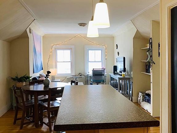 Large THIRD floor 1BR. Pets considered! (Pls describe yours. Dogs are considered, but had to put "ok" in the ad) Full bath, w/d hookup in unit or laundry in basement. Open concept LR/eating/kitchen area. New island installed w/LED lights hanging down from ceiling, and bar stools included. Off-street parking space and two entrances. This is a nicely sized 1BR with a TON of storage under the eaves. Original hardwood refinished throughout the apartment, new ceiling fan in BR. This is a smoke free, quiet n friendly building. Shared laundry machines in basement, use is free if you don't have your own to install in unit. Tenant took photos for me, as she'd prefer not to have anyone come in for a showing, but they do show the entire space. Bath is between BR n kitchen/LR area. BR is in back n has 2 closets! Kitchen/LR is in front. One driveway parking space, plus street parking. Shared yard. Location is fantastic, close to everything in Portland!! Rent is $1300 plus utilities. There's a gas monitor, and since it's 3rd floor, costs very little to heat. I have a comparably sized apt one street over whose multiple year history is 80/mo averaged over the years. So I think if you planned for 1200/yr you'd be very safe. Please include a phone number so I know it's not spam. I'll get in touch by e-mail to set up a showing. But if there's no phone #, I'll have to delete b/c I've gotten viruses in the past, so thanks in advance for including a phone #! :) -Suzanne We ask for a 2mo security deposit, but all our good tenants have been allowed to use half as rent for the last month of their lease!