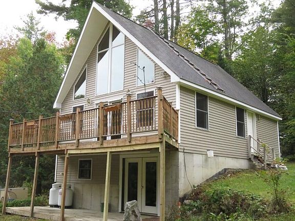 Peace and Quiet abounds with this quaint 2 bed, 1 bath chalet nestled close to the shores of Three Mile Pond. It offers a full walk out basement for further expansion of living space if desired. Relax as you take in the scenic views from the deck that stretches across the entire front of the home. Very pleasant country lot with a two car detached garage providing lots of extra storage. Well-kept home with tons of potential.
