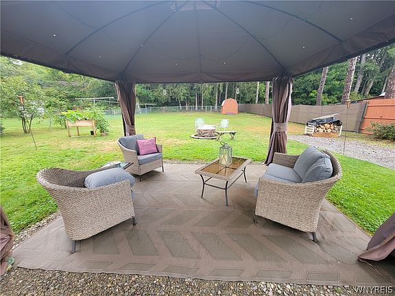 The buyer backed out for personal reasons! So its available now! This house has everything you want! It is at the end of a village dead end street so kids can play "in the street". Starting outside, there are 2 seperate driveways, one on each side of the house with plenty of parking for that big RV or boat Enjoy the big back yard with no neighbors in the back. See the overhead photo. The present owners enjoy the back yard with canopies, but plenty of room for a swingset or horseshoe pits! Of course, you can sit on the front porch and enjoy the babbling brook because the roof is new and you dont need to worry about it!