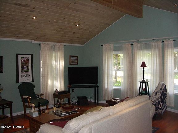 Absolutely perfect getaway home. Not too big not too small just the right size. Recently renovated and is in move in condition. Home has 3 bedrooms and 2 baths, a beautiful living room with hardwood floors, t&g cathedral ceilings, and a wood burning stove. Big eat in kitchen with s/s appliances. Great outdoor space with big deck in front and another in the back of home backing to the woods with stone walls.
