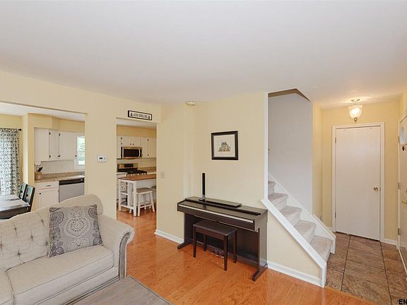 4BR, 1.5 BATH MOVE IN READY - immaculate home in North Colonie! Open layout w/ updated open kitchen (stainless appliances & new fixtures). Wood Floors, vinyl windows, and a family room on the 1st floor! Concrete patio, a great level lot w/ garden area and shed! Contingent upon owner finding new home.
