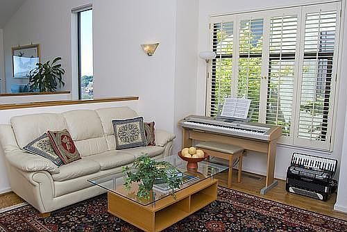 This exceptional 2169 square foot end unit in the sought-after Hiller Highlands enclave features a breathtaking three-bridge view with spectacular sunsets. 16 Windward Hill is an exceptionally private and quiet location, yet only minutes from freeways, transportation, and shopping. The flexible open floor plan is ideal for elegant entertaining while also offering intimate spaces for relaxing. Rarely does one find a home that has been so beautifully maintained and updated. There is a covered walkway from the attached two-car garage, leading to the granite entryway. The formal living room features a fireplace with marble surround, hardwood floor, picture window with low-E glass, and recessed lighting. The adjacent formal dining area also has hardwood floor, plantation shutters, a granite-topped wet bar ideal for entertaining, and a sliding door to the inviting deck. Both rooms enjoy the spectacular 3-bridge view. At the heart of the home is the sleek updated kitchen, with new granite counters, skylight, hardwood floor, recessed lighting. The inviting eating area/sun room is flooded with natural light from a motorized glass sun roof that operates with the ease of a light switch. The informal family room shares the dramatic view and also features vaulted ceiling, hardwood floor, recessed lighting. There is an elegant powder room on the main level, with granite counter. Completing this level is a large versatile bonus room with Murphy bed, ready for guests at a moment’s notice, perfect for an office or gym on a day-to-day basis. The fabulous master suite is a romantic retreat, with sitting area , marble-surround fireplace with gas starter, sliding door to expansive deck, plantation shutters, and bay view. The master bathroom has dual vanities, an updated shower with frameless glass door, jetted tub, marble and Spanish tile. There are two large closets with mirrored doors. The second bedroom has recessed lighting and plantation shutters and private access to the hall bathroom. The updated marble bathroom features an oversize shower with frameless glass door. The conveniently located laundry closet has lighting and shelving. There is a huge finished storage room, that could also double as a wine cellar. Additional features include built-in storage closets and shelving in the two car garage, with remote opener. The lower deck provides access to the trail and yard. The home is in Hiller Highlands Association VI, with low homeowner fees of only $200/quarter. 16 Windward Hill represents an exceptional opportunity for the discriminating buyer. The extraordinary views and quiet location combined with the impeccably updated interior insure that this home will be a sought-after retreat for years to come.