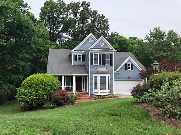 WILL PAY 2.5% BUYER BROKER FEE Dramatic transitional with extensive hardwood flooring and 9 ft. ceilings on main level. Cathedral ceiling in palatial master suite on first floor. New HVAC. Stainless steel appliances and granite countertops thorougout. Completely updated kitchen and bathrooms. New carpet in first floor master and on second floor; refinished hardwood on first floor. Professionally landscaped yard and recently repainted exterior. Very private buffered lot at end of cul-de-sac. Neighborhood pool, walking path, open green space, fishing ponds, and tennis courts. Close to UNC, Duke, RTP, RDU, and walking distance to UNC Farm Swim & Tennis Club.