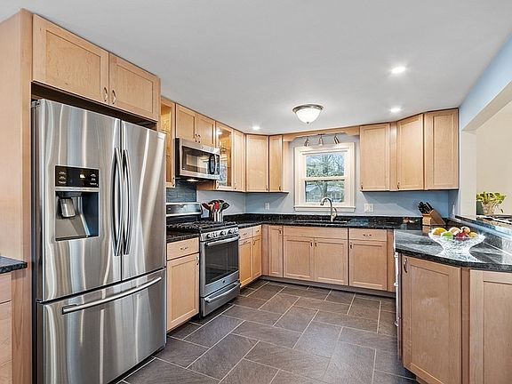 CHELMSFORD - Wow! Come see this pristine gambrel colonial tucked away in the quiet & desirable Hitchinpost neighborhood. This is a true turnkey home with extensive updates including a custom kitchen featuring granite countertops, stainless steel appliances, & a casual dining penninsula open to the dining room. The first floor has a wonderful flow that lends itself to both casual day-to-day living & entertaining.You'll find all 3 baths have also been tastefully updated. The ensuite master includes a luxurious full bath with a huge double vanity, glass enclosed shower & custom tile work. There are gorgeous hardwood floors throughout. The spacious front-to-back family room with cozy fireplace and built-in shelving is the heart of this home, but there's also a first floor living room. The basement has a 2nd fireplace and is ready for easy expansion. It's a short drive to highways, a short walk to parks, ball fields, conservation land, and Country Creamery. See this one before the weekend!