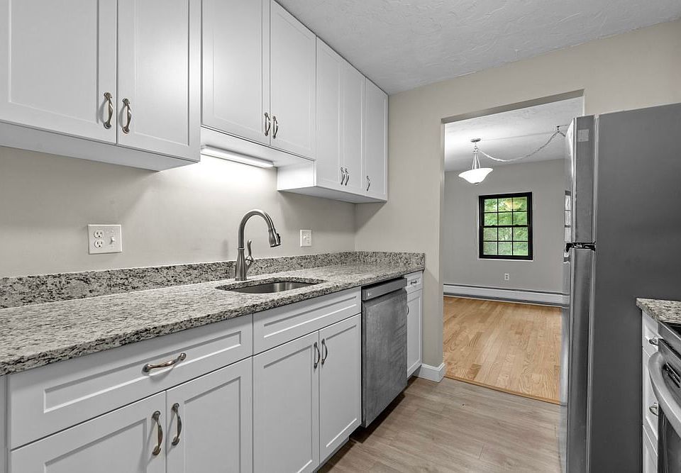 Tastefully updated corner unit...bright and modern 2BR/2BA in an elevator building. One level living featuring a bay window, hardwood floors, stainless steel appliances, pristine bathrooms, generous closet space and a full-size in-unit washer/dryer. Enjoy a private balcony with a serene view. One assigned parking spot included; a second may be rented through the association. No pets / No smoking. Sparkling clean and ready for occupancy.