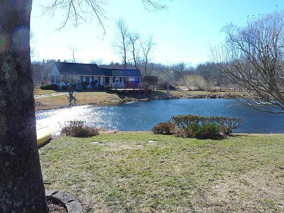 Want a short term lease away from all the hustle and bustle? This hidden away one bedroom furnished bungalow surrounded by ponds, brooks and an abundance of nature maybe just what you need. The arched bridge will welcome you, into a paradise you thought never existed so close to Boston. You will see many a variety of birds and Canadian geese nesting nearby. From the large country style Livingroom boosting a cathedral ceiling, wood stove and a welcoming Wet Bar, to the slider off the kitchen that leads you out to a beautiful deck overlooking the pond stocked with trout. Rods included. Take a walk through the 3.5 Acre professionally landscaped grounds and maybe take a moment to reflect on the private comfortable swing. Available now.