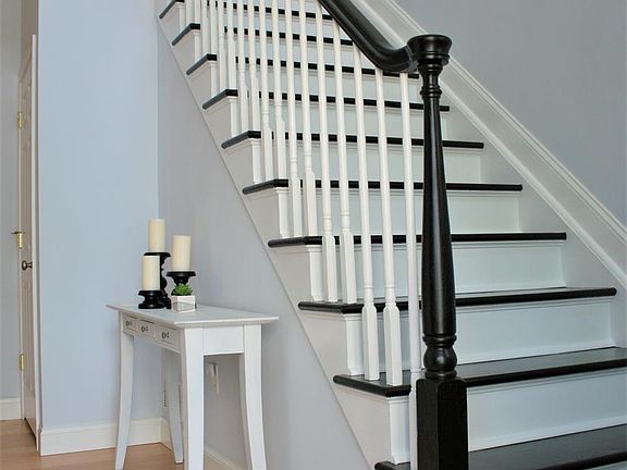 Quality townhouse in turn key condition. Spacious & bright, freshly painted, all new maple engineered hard wood flooring (lifetime structural warranty), custom plantation shutter blinds in living room & kitchen area. New kitchen cabinets, stainless steel Fridgedaire appliances, quartz countertops, subway tile backsplash. Large pantry in kitchen. Custom lighting fixtures throughout, including four ceiling fans. All bathrooms have been updated - master bathroom has freestanding soaking tub with wall mounted flat screen TV, ceramic tile, two sinks and shower stall. Laundry on second floor. Office on second floor. Full finished basement doubles living space. ADT security system. Absolutely nothing to do. Ready and waiting for new homeowners. You won't be disappointed.