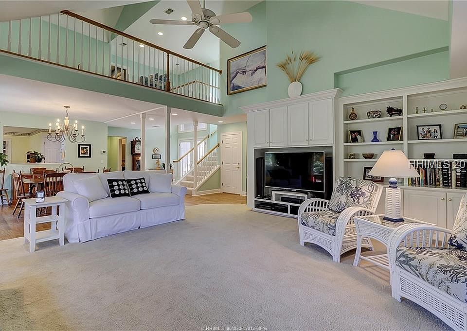 ONLY STEPS TO THE BEACH & VIEWS THE 7TH, 8TH & 9TH FAIRWAYS ON ROBBERS ROW! Light & airy home w/high ceilings & skylights. Spacious kitchen w/white cabinets & appliances, granite counters & opens to a breakfast area. Living Room has a vaulted ceiling, built in's, EZ access to the wet bar & views the fairway. Master bedroom suite & an office are located on the 1st floor. Two bedrooms & a loft are upstairs. New loft increases sq.ft. to 2574. Each bedroom has its own bath. Large master bedroom. Master bath has his & her vanities, tub, shower & a skylight. Screen Porch. Wide patio. Has solar panels which greatly reduce your power bill.