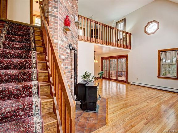 MORE PHOTOS COMING SOON! Well Maintained, Original Owner, 9 Room Custom Cape ~ Set on 12.6 Private Acres ~ Backs Up to State Land. The Spacious Open Floor Plan unfolds when you enter the 2 Story Foyer. This Home Features 3 Bed Rooms, 2 Full Baths, and a 2nd Floor Loft. The Open Kitchen Features Corian Counters, and flows nicely into the Dining Area Which Has Built Ins. Hardwood Floors Just Refinished, French Door and Windows lead out to a Beautiful Fully Screened Sun Room. The Living Room features a Cathedral Ceiling, Skylight, Pellet Stove Set on a Floor To Ceiling Center Wall Custom Brick Hearth, and a Second Floor Loft with a Balcony Overlook. 2 Car Attached Garage, & Full, Dry Unfinished Basement awaiting your finishing ideas. Quality construction is evident with Custom Mill-work, Post & Beam Ceiling, Updated Kitchen, Updated Bathrooms, Built-Ins, And a Graceful Flow Which is Great for Entertaining. Convenient to UConn & I84 This is a One Of a Kind, and a MUST SEE!