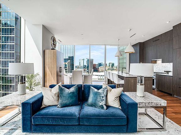 Sitting seventeen stories above the Cumberland River banks, this magnificent Private Residence is the ideal elevation for up-close viewing of Nashville's iconic landmarks. From the moment you enter the home, you will be drawn to the gorgeous views seemingly right beneath your oversized windows stretching from cityscapes to rolling hills and beyond. This magnificent residence has been transformed and customized with an inclusive smart home system you can control with the stroke of a key. Customized electronic window shades on every window, Lutron lighting for every stunning light fixture, each closet has been expertly designed for maximum functionality. The option to purchase fully furnished, this turnkey residence has every luxurious amenity that is quintessentially, Four Seasons