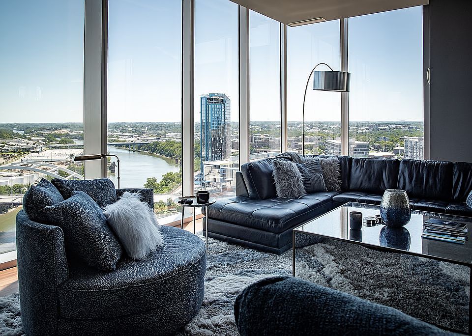 Luxurious 2-Bedroom Condo at 4Seasons Nashville Residence Discover the epitome of urban luxury living at the prestigious 4Seasons Nashville Residence. This stunning 1,544 square-foot condo offers an unparalleled lifestyle with breathtaking views, world-class amenities, and sophisticated design. The open-concept living and dining area is perfect for both entertaining and relaxation, featuring floor-to-ceiling windows fully equipped with automatic shades, that bathe the space in natural light and provide spectacular views of the Nashville and Nissan Stadium. The two generously sized bedrooms, each with its own en-suite bathroom. The primary bedroom boasts a spa-like bathroom with a deep soaking tub, walk-in shower, and dual vanities. Residents of the 4Seasons enjoy access to various luxury amenities including a fitness center, swimming pool, spa, concierge services, and a residents’ lounge.