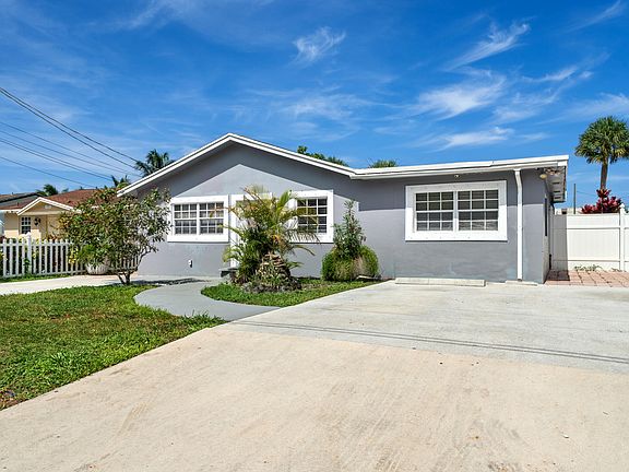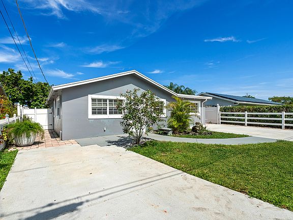 Welcome to this well maintained 4 bedroom 2 bathroom home with no HOA in the heart of West Palm Beach! This inviting residence features a functional layout with spacious living areas and a kitchen equipped with ample storage and stainless steel appliances.The highlight is the gorgeous backyard oasis. Fully fenced for privacy and perfect for entertaining, with expansive paver patios, a large covered patio with ceiling fans, a gazebo, mature tropical landscaping, and additional storage sheds.Conveniently located near shopping, dining, schools and major highways this home is move in ready and ideal for enjoying Florida living inside and out. Ample parking with two separate driveways for added convenience.