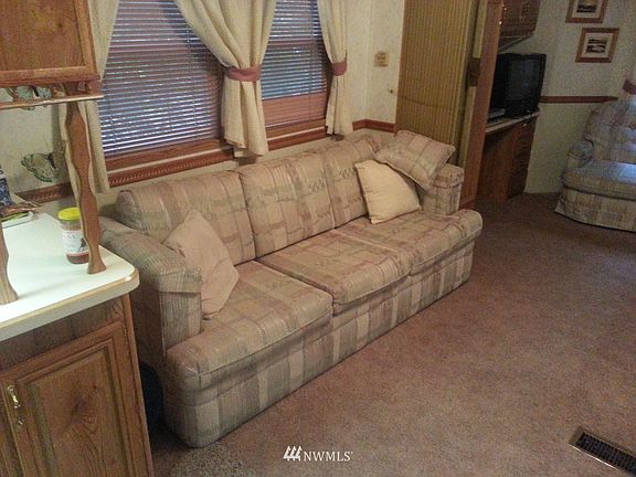 Excellent value in this Mallard Park Model trailer that features both a bedroom and an oversize dividable living room to make a second guest bedroom. Ceiling fan, skylight, metal roof, and full size furnace in this one too. Large fire pit area and private sitting area at the rear of the property too. There is also a fully insulated shed/bunkhouse. Turn key property- Ready, Set, Vacation!