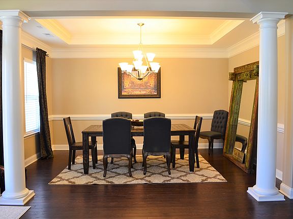 Meticulous detail w/main level in-law suite located in ALL BRICK COMMUNITY! Boasting 5 Bdrms & 4 full baths, Fabulous open concept kitchen w/massive island, granite & SS Appliances is every chefâs dream w/Breakfast area, gleaming wood floors, Columned Dining & Office accent the home nicely, Large Master Suite w/Luxury Bath, Bonus w/great possibilities & a huge partially covered deck backed to a wooded area for all your outdoor fun! Affordable luxury to the last detail! Home has upgrades galore!