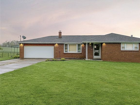 WOW - First time listed! Single owner brick home on a pancake flat lot located just minutes to downtown Saxonburg. This well-maintained home has a main level featuring an oversized 2-stall attached garage, updated eat in kitchen with double ovens, a full bathroom, 3 nice size bedrooms with large closets, huge living room with picture window, and a covered front porch. Walk down to the lower level and be stunned by the stone fireplace, huge living space, tiled flooring, full bathroom, den/4th bedroom, and a walk out to the covered rear patio overlooking the amazing views. You will not lack for storage space, there is an attached shed in the rear for all your storage needs and even more storage via the pull downstair ladder to the garage attic. Concrete driveway and a lush lawn complete this wonderful property. The rear yard is perfect for your new inground pool!!! Efficient baseboard heat and central AC complete this home.