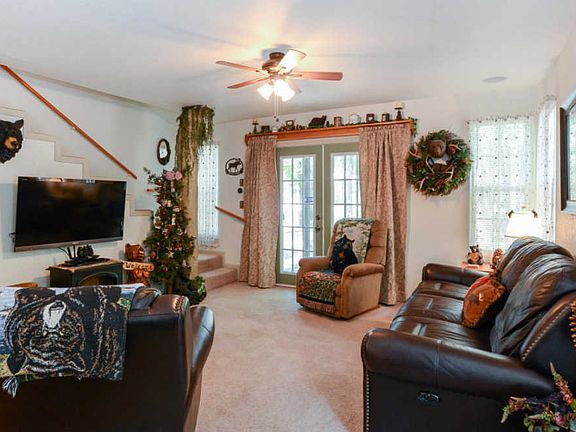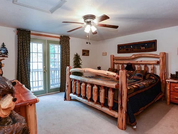 GOT BEARS? PRETTY CABIN, RUSTIC DECOR, GREAT SPACE!! GENTLE WALK TO THE WATER!! Cutest little home in the coolest neighborhood!! Enter to a soaring ceiling over the Kitchen/Dining room & a cozy Living area. Bears are everywhere!! As well as Hardwood floors, Antlers light fixtures, & wood paneled walls. A good sized Kitchen has room to work & play, with lots of drawers, cabinets, & a lazy susan corner. One bedroom, bath & laundry on the main level. Upstairs are 2 bigger bedrooms & a bath. From the loft you can see everything. The rustic decor is delectable. Cute nooks & crannies, too. The lot is within sight of the swimming pool,& tennis/basketball courts. Short walk to the Lake, the community center & the children's play area. Both full time & part time neighbors, but no vaca Rentals here