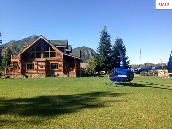 Custom, waterfront log home on private island with road and air access. Sloping lawns to shoreline with "L" shaped dock. Private guest apartment with a fully equipped kitchen with access by exterior, circular staircase. Numerous custom features throughout. Landscaping, circular driveway, life-size bronze elk statue, rock pathways, in-ground sprinkler system and raised garden beds included in property features. House features include stone fireplace, granite counters, wood floors, wood doors and trim. 3 bedrooms in the main custom home, with a master suite, loft office, and over-sized garage with high clearance RF/boat doors and a shop area. 1 bedroom in the guest apartment with a kitchen, and a separate bath with tile features. Derr island is a the mouth of the Clark Fork River, with easy access to Lake Pend Oreille from the shoreline dock. Land features include access to 2 airstrips for the aviation enthusiasts.