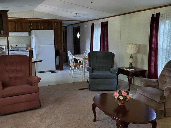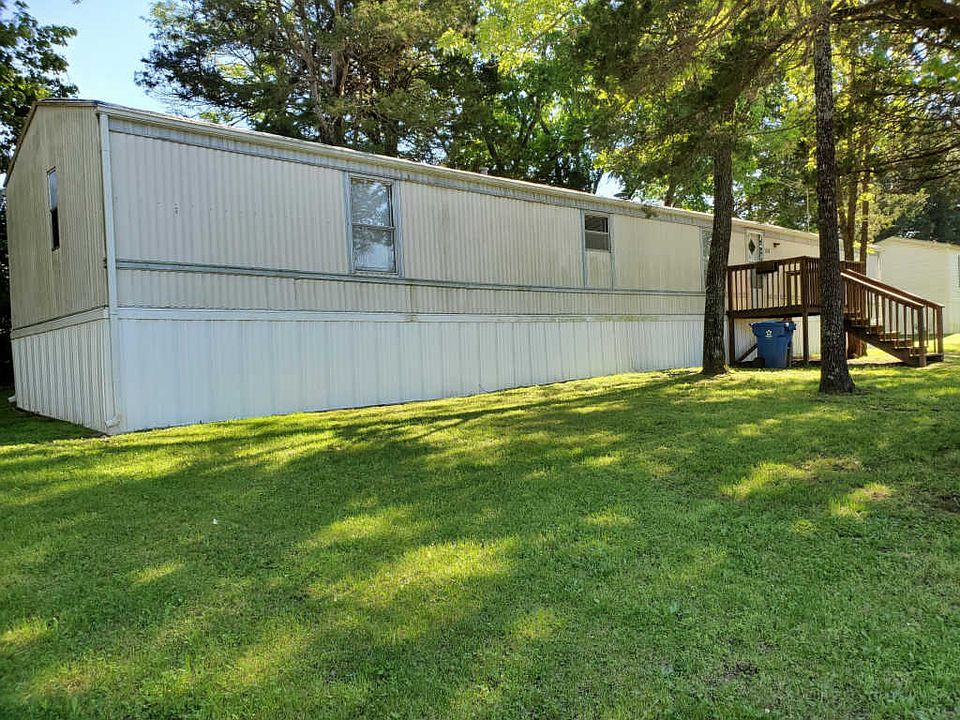 Located in a quite mobile home park across from Hollister Schools, this is a well maintained Singlewide mobile home on a Rented Lot. Move in ready Fully furnished down to the silverware. Updates from 2018 and 2019 include New faucets, new shower and toilets, walk in showeri n master bathroom, shower over tub in 2nd bath, seamless guttering with leaf guards, roof coating and new skirting. Storage shed in back. Current lot rent is 187.50, Subject to approval with the park.