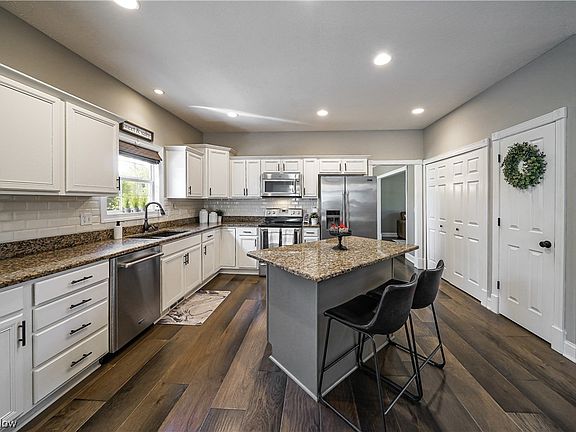 Shows like a model! This beautiful 5 bedroom 4 full bath colonial home in the Lakes of Aurora is a must see! Enter Vaulted ceilings, newly installed wood flooring to a spacious foyer. The first floor offers a home office, dedicated dining room, full bathroom. The open concept kitchen has a large island, spacious pantry space and newer stainless steel appliances. Off the kitchen is a lovely great room with gas fireplace and vaulted ceilings. The first floor kitchen slider connects to a nice sized deck that descends to the lower level walk out basement. On the 2nd floor are 5 large bedrooms and 2 more full bathrooms. The master bedroom features great closet space, and bathroom with oversized tub, double sinks and walk in shower.