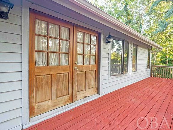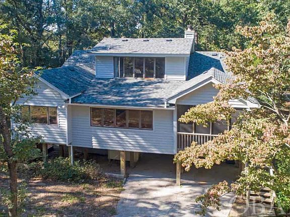 Canalfront living in Southern Shores can be yours and possibilities abound in this open concept home! The living area is open and airy and has a toasty, warm, wood burning fireplace. There is large dining room off the kitchen. All rooms in the house have hardwood floors! The largest bedroom has a walk-in closet and private vanity that shares a bath with the yellow bedroom/office/learning center. On the other side of the living area are two more bedrooms which share a bath. Ground level is enclosed and ready for you to finish to your best use! (not included in heated sqft) Maybe an in-law suite or income producer? The home comes with chalkboard wall in kitchen for kids, clear hurricane shutters easy on & off and an invisible fence around entire yard & collar transponder. Before moving the owners loved the location and its wonderful neighbors & the following perks : great spot for children being on a cul-de-sac street, to teach them to fish & crab right at home and walk or bike to the beach with lifeguard stand at the beach access, tennis courts & SSCA Park or sound front marina. Parking at Hillcrest beach, playing tennis or use of marina facilities requires joining SSCA & Tennis or Boat Clubs. NEW: Interior paint 10/20, hardwood flooring in loft & front nw bedroom 10/20, dishwasher 5/20, roof & gutters 2019, drain field 2018, main house HVAC 2017.