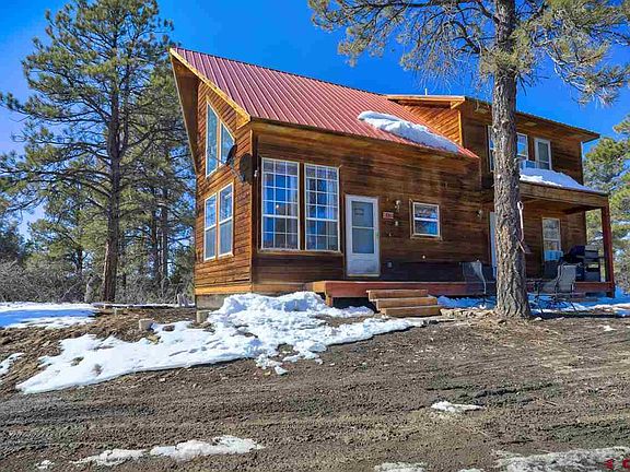 The Southern Colorado Mountain Getaway that you've been looking for! Prow front home at the end of a cul-de-sac. Mountain Views and privacy. 3 Bedrooms, 2 Bathrooms on 3.47 acres. Great room style living room/Dining Room with huge windows on all 3 walls. The big windows give you tons of natural light and opportunity to enjoy the outside views from inside. Also great for viewing the abundant wildlife that's in the area. Large master suite with a door that goes out to a balcony so you can enjoy the mountain views. On suite bathroom and a big walk-in closet. Outside the master suite is a loft for extra space. It could be used for an office, play area or extra sleeping space. Hardwood floors and tile throughout except the bedrooms. Bedrooms have cozy carpet for warm feet! Other amenities included with the home is central water, a pellet stove, washer, dryer, refrigerator and more. Enjoy what Pagosa Springs has to offer because this home is in a very convenient location. Quick drive to downtown, half an hour to Wolf Creek Ski Area, Echo Lake only 4 miles away. Great for fishing for many species of fish, paddle boarding, kayaking etc. Act now this won't be available for long!