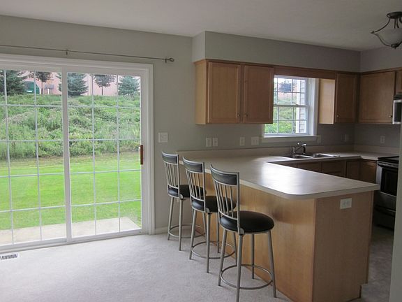 Nice condo freshly painted and new carpet throughout as well as new flooring in the full bath that has double sinks. New water heater. Tile entry. Gas fireplace with tile surround. Built-in speakers with surround sound. Flat screen TV. Stainless steel appliances in kitchen. Large pantry. Master bedroom has 3 closets. Full unfinished basement. Nice flat yard space in the back. Conveniently located close to I-99, stores and gas station. Nicely priced at $189,900.