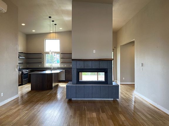This custom home near Water's Edge is a charming 2-bedroom, 2-bathroom home located in the scenic city of The Dalles, OR. There are a variety of modern amenities that are sure to impress. The living area features a double-sided cozy gas fireplace, high ceilings, hardwood floors, and a ceiling fan, creating a comfortable and inviting space. The kitchen is a modern chef's dream with a gas range, stainless steel appliances, island and pantry. Your dining area boasts a slider onto the partially covered large deck, which is perfect for entertaining or simply enjoying the outdoors in almost any kind of weather. The two bedrooms with attached bathrooms are equally impressive, with one featuring a luxurious soaking tub, along with access to the deck.