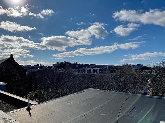 Top floor, 2 bedroom in Southie available for a SEPTEMBER 1ST move-in. Newer renovation consists of kitchen with granite counters, breakfast bar, and stainless steel appliances open to the living room. Hardwood floors throughout, small back deck area, PRIVATE ROOF DECK, air conditioning. Washer/dryer in unit. First month's rent and last month's rent due at lease signing, tenant to pay fee of one month's rent. No utilities included. No dogs, cats ok. Refundable key fee of $200. Photos from prior tenants.