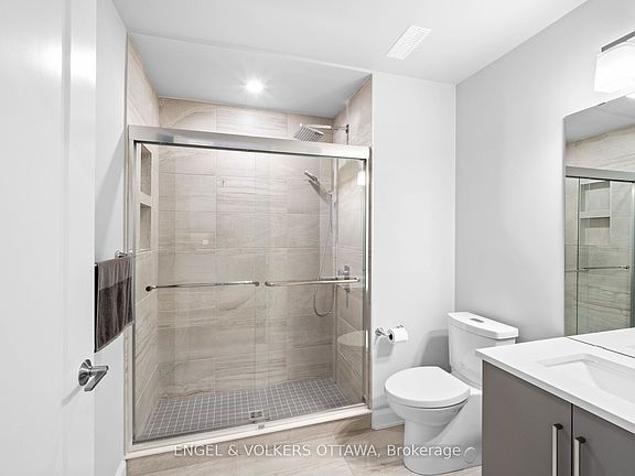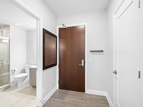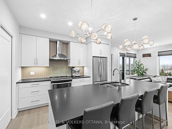 Welcome to modern condominium living in the heart of Kanata's Heritage Hills! This stunning 2-bedroom + office, 2-bathroom unit combines sleek contemporary finishes with a thoughtful open-concept layout. Step inside to find hardwood floors throughout and oversized windows that bathe the living spaces in natural light. The upgraded kitchen showcases a large center island with a breakfast bar, dark countertops, stainless steel appliances, and ample bright cabinetry - perfect for both cooking and entertaining. The spacious living room extends onto a private balcony, offering an outdoor retreat for your morning coffee or evening relaxation. A generously sized primary suite boasts a walk-in closet and stylish ensuite bathroom with modern fixtures, while the second bedroom is tucked away for optimal privacy. Need a dedicated workspace? The separate office is ideal for working from home or flexible as a hobby room. In-suite laundry, underground parking, an elevator in the building, and secure entry round out the amenities of this exceptional unit. Enjoy the convenience of being moments away from Kanata's top-rated schools, parks, shops, and restaurants. Commuters will appreciate easy access to main transit routes and Highway 417. If you've been seeking turnkey luxury in a prime location, look no further - this beautifully appointed condo is the total package!