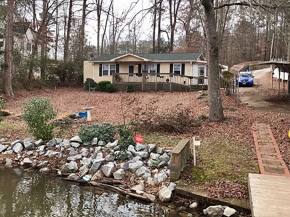 Save money, deal directly with the homeowner, call 770-461-5203 or email at trcaldwell64@yahoo.com. DEEDED ONE ACRE waterfront home on Jackson Lake. This home has its own newly poured boat ramp and new covered boat dock. The house was remodeled in 2013 with new paint, new floor, cabinets refaced, new ceiling fans, and new roofs on all buildings. The house has 3 bedrooms, 2 full baths, living room, kitchen, dining room, and sun room that can be used as an office or den. The property has two large carports that will cover three or more cars/boats. There is a large out building with electricity that can be used as a workshop or for storage. Additional lot makes the property one acre. This is an excellent deal at $209,000. Call 770-461-5203. If no answer, please leave a message.