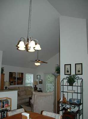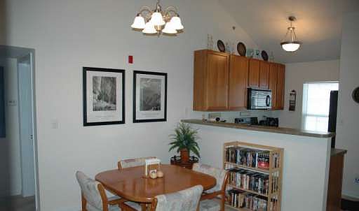 Beautiful 2nd floor condominium for sale in High Ridge, Missouri, purchased new by owner in 2008. Fully assumable FHA bank loan with 3.75% rate, 28 years left on refinanced mortgage. Loan origination fee for prospective new owner ranges from $400 to $1,000, otherwise no money down. Condo features include wall-to-wall carpeting, 14' vaulted ceilings in living, dining, and master bedroom areas, six-panel doors, Whirlpool self-cleaning glass-top stove, microwave & hood, dishwasher, side-by-side refrigerator with ice-maker, washer and dryer. Kitchen has 42" custom stained cabinetry with concealed hinges, stainless steel Moen 6" double-bowl sink, and disposal, and raised breakfast bar top extension. Ceiling fans in living room and Master and hall bedrooms. Master bedroom has cultured white vanity top with twin sinks, one-piece shower fiberglass shower with built-in seats, spacious walk-in closet, custom stained 36" vanity cabinets with concealed hinges, four shelf linen closet, exhaust fan, and full-length plate glass mirrors over master over vanity. Hall bathroom has similar features with fiberglass tub. Low maintenance high-pressure wood deck overlooks wooded area. Access to the amenities center includes pool, cabana, sport court and tennis court. Centrally located mailbox. Street parking is available for two cars. Energy package includes double-pane thermal break vinyl insulated tilt-in windows with painted sills, R-38 blown ceiling insulation, R-13 wall insulation with 7/16 OSB sheathing, R-13 sound absorbing insulation between floors, energy-efficient Lennox electric heating system and 13 S.E.E.R. air conditioner. Energy-efficient A.O. Smith 40 gallon electric hot water heater. PEX plumbing system and PVE returns. Copper electrical wiring with 100 AMP service. Unit has three RG-6 rated coaxial cable jacks, and three telephone jacks. Smoke detectors in all bedrooms hardwired with battery backup. Fire suppression system in all units. PWC transferable 10-year warranty program. 08/02/16