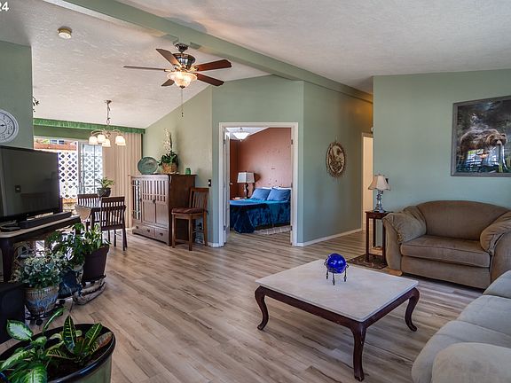 Look at this adorable 3b/2bath home in a peaceful and comfortable living in Oregon's stunning green area surrounded with mountains! This home features an open-concept design that seamlessly connects the living room, dining area, and a cozy breakfast nook. The spacious kitchen is well-lit and offers ample storage , a pantry and all included in sale appliances.The luxurious primary bedroom suite boasts a spacious master bathroom with double sinks, a separate shower room, and plenty of storage. Enjoy a beautiful deck with an electric awning, perfect for taking in the meticulously landscaped front yard and breathtaking mountain views.Step into your back yard private oasis, complete with a covered patio and a beautifully landscaped yard designed for relaxation. The fenced backyard ensures privacy and security. Additional features include a 2-car garage, new flooring, a new water heater, and a new dishwasher. The furnace was updated in 2022.Park is a community located in 5 min from town and freeway! You can enjoy community holidays, pot lucks, and casino poker nights, car shows, farmer's market, pool , concerts and a lot entertainment! You will have selection of restaurants and shops. Community offers RV parking area if you are traveler. Don't miss the chance to make this beautiful home yours!