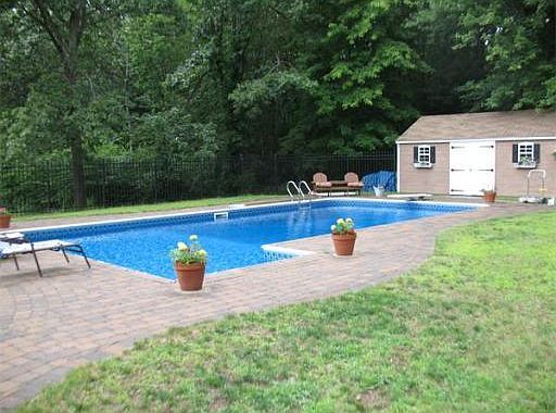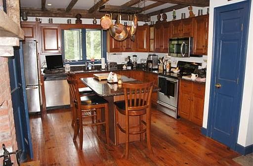 Not your typical "cookie cutter" colonial. This reproduction Farmhouse Colonial features a 3-story foyer with oak staircase. Wide pine floors and a chestnut beamed kitchen with cherry cabinets and a wood burning fireplace. The master bdrm has a private fireplace and large walk-in closet/changing room. Huge bathroom w/ Jacuzzi. 3rd floor has 2 additional rooms that are perfect for teens or guests. Relax and enjoy the summer in the private in-ground pool. This is a must see - set far back from rd