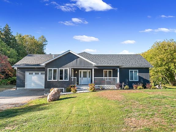 Welcome to your dream home! This stunning 3-bedroom, maintenance-free property boasts an open-concept kitchen, dining room, and living room with a gas fireplace and vaulted ceilings. Enjoy the convenience of main floor laundry and step out onto one of two decks, one featuring a relaxing hot tub. Extra bonus room is the enclosed screened in porch to sit and relax. The primary bedroom retreat offers a spacious walk-in closet and convenient ensuite. Two additional bedrooms and a 4pc bath complete the main floor. The expansive 1669 sqft basement is divided into two areas: a self-contained 1-bedroom apartment with its own entrance and a family/living room area with another bedroom. With 14 acres of private land and potential for two severances, this property offers endless possibilities. Plus, it's nestled near Grafton Public School and Grafton Catholic Public School.