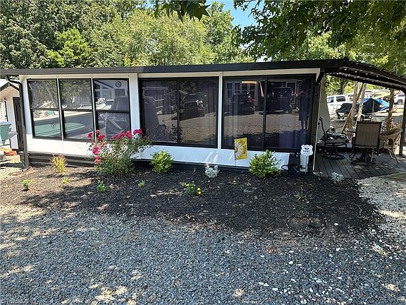 Beautifully Remodeled 2-Bedroom on Spacious Corner Lot in Badin Shores Resort. Welcome to this beautifully remodeled 2-bedroom, 1-bath camper with a spacious room addition, perfectly positioned on a large corner lot. This property features a convenient pull-through driveway with ample parking for water toys, golf carts, and vehicles. Inside, enjoy the open-concept living, kitchen, and dining area with updated flooring throughout. The kitchen includes updated cabinets, countertops, and full-size appliances. The bathroom has been fully renovated with a tub/shower combo featuring ceramic tile surround, updated flooring, and a new vanity. A standout feature of this home is the central heat and air heat pump - a rare upgrade not found in most campers. Relax by the firepit or dine under the covered patio after a day on the lake. Located within the gated, waterfront community of Badin Shores Resort, you'll enjoy all the resort amenities. Come enjoy lake life and resort-style living year-round