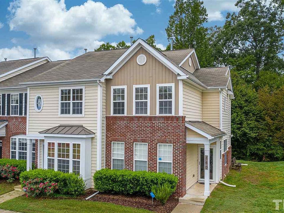Amazing updated end-unit in coveted Hope Valley Farms! Open and bright main level has impressive upgrades including recently added custom built-in storage with beadboard accents, and an awesome office nook off the kitchen! The corner fireplace in the spacious & open family room add to the special homey feel! Both upstairs bedrooms have en-suite bathrooms and main bedroom boasts vaulted ceilings for an even more spacious feeling. Best of all; this end unit has one of the most private lots in the community!