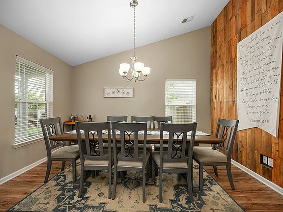 Welcome home! This spacious 4 bedroom 2 baths home is located in Barony @ Spring Grove Plantation Subdivision and move-in ready for its new owners! This home boasts upgraded high end laminate driftwood oak flooring installed throughout the house except in the bathrooms and laundry room which are ceramic tiles. A formal dining room is to your left as you enter. Next you walk into the open concept living room/kitchen area. Kitchen offers upgraded white shakers all-wood cabinets, soft close drawers, 8 foot long oak bar, leather finish quartzite counter tops, deep single sink, LED recessed lighting, natural gas stove, light in the pantry, breakfast area and so much more. Master bedroom is downstairs and it is large with a good size walk-in closet.The other two bedrooms downstairs are spacious with enough closet space as well. Large bedroom upstairs has an extra large closet which can be converted into a full bathroom. Bathroom upgrades include white shakers all-wood cabinetry with soft-close cabinet doors, leather finish quartzite counter tops, white porcelain sink basins, upgraded vanity light fixtures, tiled walk-in shower in the master bath. All rooms are painted with washable finish paint. This home is also energy heating/cooling efficient. White aluminum screen porch is installed on the back concrete patio. 10 ft x 15 ft deck with railing and stairs is installed by the screened porch. The house is situated on a lot that backs up to a wooded area. To enjoy this natural view, there is 4' aluminum fence with a gate installed along the back property line. Amenities include community pool, two playgrounds, long walking trails, playing field, boat/rv storage, disc-golf. Close to Bushy Park, Charleston Naval Weapon Station, schools, shopping and restaurants.