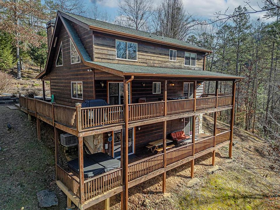 A nice place to call home and a proven investment. This Mountain Tops cabin is being sold completely furnished & is turn-key. Offering four bedrooms & three full baths, with the master suite on the main level, a master bath with double vanity, tiled shower, and jetted tub. Spacious kitchen with granite countertops, a large center island, and stainless steel appliances. Great room design with corner wood stove. Oversized covered back porch and extra-large loft area provide additional sleeping quarters and a nice sitting area. The finished terrace level offers additional guest quarters, a wet bar area, a pool table & air hockey, and access to the lower deck, hot tub, and fire pit area. The community of Mountain Tops offers all paved roads and quick & easy access to Hwy 515 and the downtown area of Blue Ridge. Just minutes away from Lake Blue Ridge Marina, the Toccoa River, and the New University of North Georgia, Blue Ridge Campus.