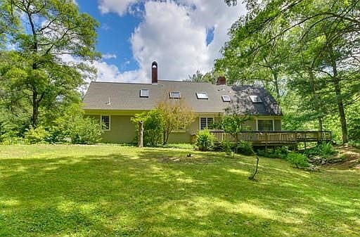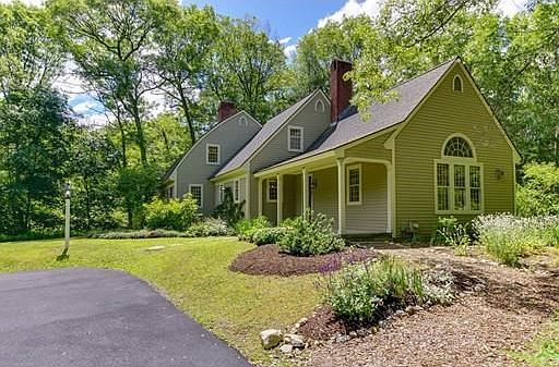 This colonial bow roof cape cod style home was built in 1987 in a style that dates back to the 1600's and was designed to resemble the inverted bow of a ship. The original bow roof cape cod style homes were built to make sea faring men feel more at home when on land and this home is designed to make today's modern family comfortable in a historically-inspired home. Situated back from the road on a 2.93 acre wooded lot this home not only affords privacy but also provides an opportunity for living in a beautiful natural setting. From its wide pine board floors to its large elegant fireplaces this home features elements today's family needs - spacious rooms, open floor plan, walk in pantry, large country kitchen, main floor laundry and large deck perfect for family gatherings. The first floor features a master bedroom with bath which could be used instead as a guest room. There's a new driveway and furnace and the first floor pine floors have recently been refinished.