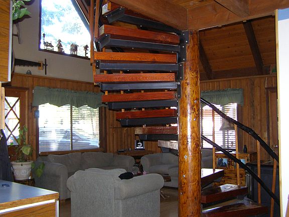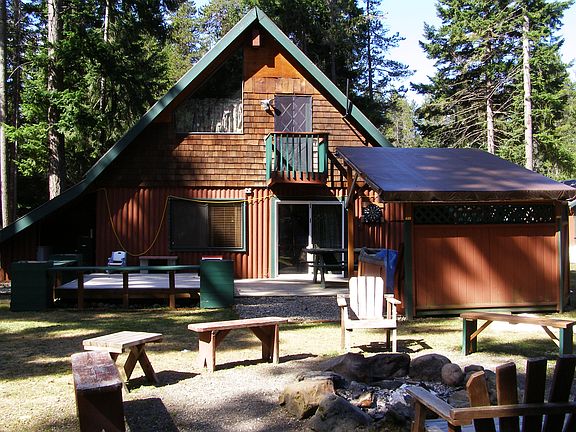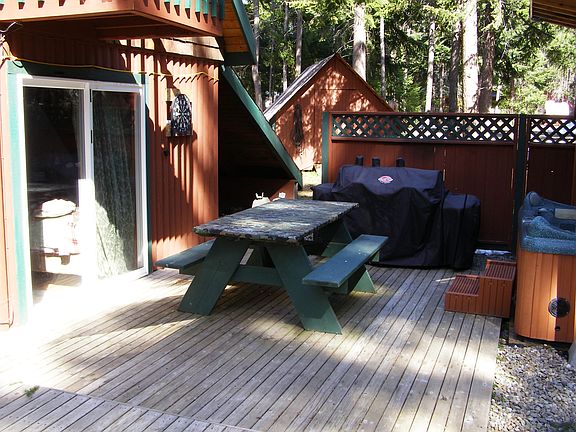 On two wooded parcels sits this vacation getaway or year-round home waiting for new owners. Vaulted living room with tongue and groove wood paneling. Outdoor living areas feature a deck, hot tub and fire pit. Outbuildings for all your toys... This is a short sale and priced right!
