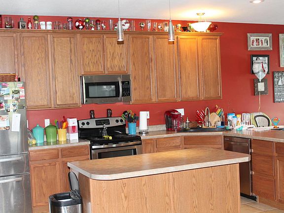 Lovely home with open floor plan; jetted tub and onyx shower in master bath and onyx vanities in full baths; surround sound in living room and outdoor speakers; stocked pond; nice landscaping; 2200 square foot heated shop with double garage doors.