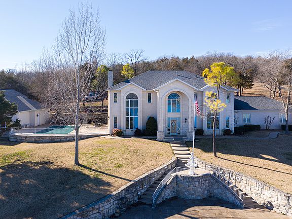 Stunning Lakefront Estate on 3.5 Acres! Mowed to the Water's Edge! Panoramic Lakeviews that will knock your socks off! This gorgeous home features a private gated entrance, 5 bedrooms, 5 1/2 baths, 3900 sq. ft, an inground pool with outdoor entertaining area & grill, a welcoming foyer with grand staircase, cathedral ceilings, great room with fireplace, stately master suite & master bath with fireplace, provisions for an elevator, whole house generator, 2 car attached garage and detached heated & cooled garage with RV garage, his & her full baths & a one bedroom apartment above the garage! Walk to the water & launch your personal water craft! You can also enjoy Big Cedar's fireworks from your front yard! This is the ultimate lake package!