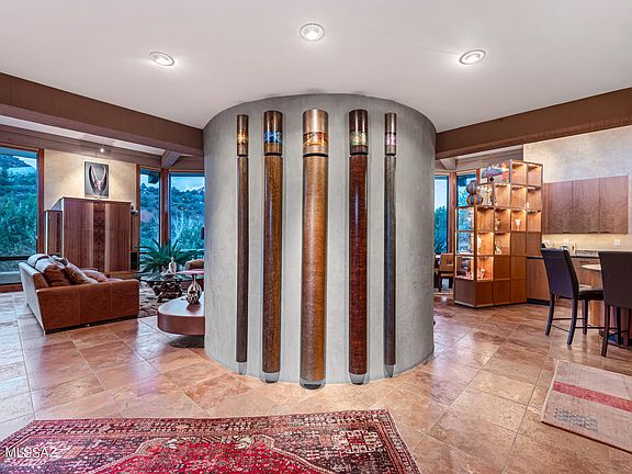 This stunning property in Sedona, Arizona, is a unique opportunity to own a piece of paradise in the highly desired Creek Mesa subdivision. The home was designed for a single owner who is an art enthusiast, to showcase their art and to enjoy the breathtaking views with privacy. Now, this hidden gem can be yours. The magic starts as you drive up from the private gate to your spacious paved driveway. You will see how the home blends into the natural flow of the mountain. As you lift your sight, you will be amazed by the majestic mountain views. As you walk into the bridge of greenery, you will hear the serene sound of running water in the delicately crafted courtyard. You will be greeted by a majestic architectural accent cylinder that serves as a centerpiece for art and warmth. The house offers a cathedral ceiling and floor-to-ceiling panoramic windows that not only provide natural light but also offer incredible views of Mountain Wilson. The split floor plan has an organic flow to enjoy the outdoors from every space in the home. The house offers many outdoor sitting areas, including a balcony and a fabulous spa just outside of the main bedroom. There is also a below-grade entertainment game room, a steam bathroom, and a wet bar, that opens to the outdoor kitchen and to the negative edge pool with a water feature. The pool is prepared to be used every day of the year, since it has a pool water heater heated by solar panels. It also has a convenient cover to use it at your convenience and keep it free from debris.