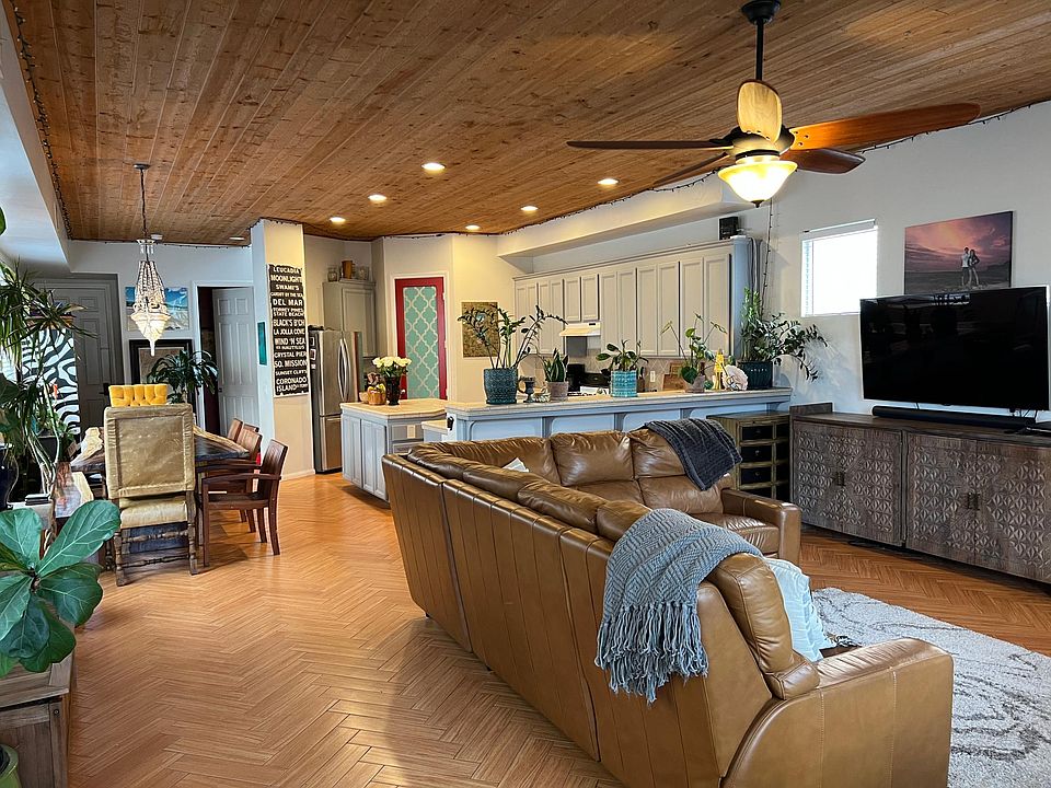 Quintessential beach home a half block from the beach. This two story detached home features 10 foot ceilings on both floors for an open air feel and ample space with 4 bedrooms and 3.5 bathrooms. Large open concept kitchen and living room, perfect for entertaining. Stone fireplace and wood ceilings on the first floor and another fireplace with vaulted wood ceilings in the master bedroom. Ceiling fans in every room with a whole house fan and heater. Tile downstairs, commercial grade luxury vinyl plank upstairs with carpet in two bedrooms. Partial ocean views from balcony and upstairs bedroom with daily onshore breeze. Jack and Jill bathroom upstairs between bedroom 1 and 2. Plenty of closet space in all the bedrooms, including a walk in closet in the master. Large two car garage with extra storage racks on ceiling and racks for surf/paddle boards. Side yards have ample storage space for all the toys and BBQ. Front yard is landscaped and ready for BBQing with friends and family. Short walk to beach, parks, restaurants, estuary and all that IB has to offer. Don't miss out, this one will go fast! One year lease by Owners. Renter is responsible for all utilities, gas/electric, trash service, cable/internet. Pets are negotiable and with additional monthly fee.