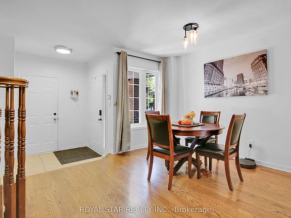 Welcome to this bright and spacious home in one of Barrhaven's most desirable neighbourhoods with an extended stone driveway providing extra parking and a no-grass front and backyard for easy, low-maintenance living.. A large tiled foyer with a coat closet and inside garage access sets the tone, complete with a convenient powder room. Step up into the open dining area filled with natural light. The main floor features gleaming hardwood throughout, with tasteful tile in the kitchen and eating area. The spacious galley kitchen offers plenty of cupboard space, a double sink under a sunny window, and an eating area with patio doors leading to the back deck. The fenced backyard includes an elevated deck and mature trees perfect for relaxing or entertaining. The cozy living room overlooks the yard and is anchored by a gas fireplace with a wood mantel and tile surround. Upstairs, you'll find three generously sized bedrooms with bright windows, a full bath, and a spacious primary suite. The primary boasts a wall of closets, a large window overlooking the backyard, and a spa-like ensuite with a soaker tub, separate shower, and a large window for natural light. The finished lower level features laminate flooring, a family room, a laundry room, ample storage, and a large egress window.