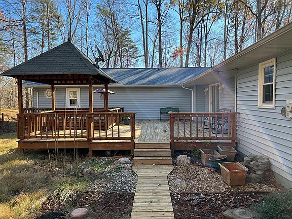Spacious one level living ranch style home with 4 bedrooms and 5 full baths! Large formal living room with fireplace with craft room off the master suite. Each bedroom has a full bath within or nearby. Wood floors throughout! Laundry room off of the 2 car garage and huge deck out back for entertaining with multiple gazeebos on site. New roof just installed in 2022 and mostly wooded tract with Bearskin Creek on the back side. Hot water tank new 2022.