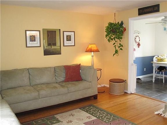 Wait until you see this adorable dollhouse! Vinyl sided cape cod on quiet tree lined neighborhood street!Hardwood floors,living room, picture window, dining room, built in corner cabinet, eat in kitchen with new ceramic tile floor, full bath down, 3rd bedroom or great office on first floor. Huge master with cathedral celing and fan, walk in closet.2nd bedroom and full bath up. Dry basement, glass block windows, Furnace and C/A, hot water heater '02. Security system , NEW ROOF. NEW WINDOWS UP! Beautiful yard with pond, deck, trellis, flowers, fully fenced. You wont be disappointed. Hurry!