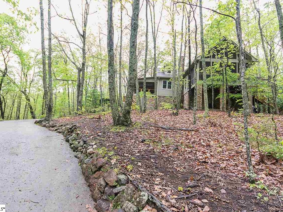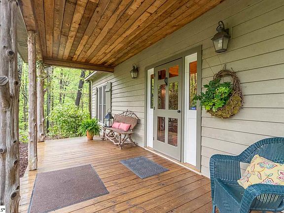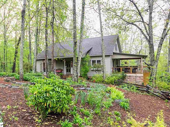 If you are looking for an incredible one of a kind mountain home, you have found it! This exquisite custom-built home on approximately 15 acres (woods/2 creek) has a 180 degree "winter" view of the mountains with unbelievable sunrises and is only a 35 minute drive to downtown Greenville, 10 minute drive to Hendersonville, and 45 minute drive to Brevard. It has approximately 2683 SF and was built by the sellers in 1998. It features 3 BR 3 BA, with master BR on main level, office/study, formal DR, den, upstairs reading area, laundry area with sink and shelving, screen porch, two covered porches, and patio. The exterior wood is stained western cedar - highly rot and insect resistant and was re-stained 3 years ago. The home's interior is composed of wooden materials personally gathered by seller over many years from old homes, barns, sawmills in Greenville, Spartanburg, Pickens and York counties. The wall treatments in each room, including baths, consist of this reclaimed wood - predominately southern pine, with some chestnut - each reclaimed board - graded/cleaned and its specific location planned by seller. Cabinets throughout this lovely home, including black walnut kitchen cabinets, were handmade by a local craftsman . Kitchen also features granite countertops and a gas FP. There are built-in bookcases in office/study, and upstairs loft. An 1800's log cabin in Greenville Co. was dismantled, moved to property, reconstructed for outside storage building, and pine beams used in office/study. All beams throughout the home are decorative in function (not structural) - DR (pine from log cabin), office/study (pine from log cabin), and kitchen (heart of pine). The posts, rails, and steps of stairway are reclaimed materials from 1850's abandoned homes in northern Greenville County. All handmade solid wood interior doors came from mid-19th century homes in York, Spartanburg, and Greenville counties. Hardwoods downstairs are tongue and groove heart pine milled from large beams removed from turn of century building in Georgia and attached to sub-flooring with counter-sunk screws covered with black walnut pegs. Base board molding is from a 1903 home in downtown TR. There are tongue and groove oak hardwoods upstairs. Pine beaded board from 1920 home in Pickens was used for wainscoting in DR. Wooden walls used in den came from several barns and outbuildings in TR. Raised hearth, floor to ceiling, wood burning FP was made by local stone mason using native mountain stone. Mantle is hand-hewn oak beam from mid-1800's log home. Matching hand hewn floor to ceiling oak beams from same log home outline FP. Master bath has heart pine and chestnut wall boards. The geometric floor design in downstairs powder room was stenciled by a northern Greenville Co. artist and wallboards are southern pine bead board. AND endless storage! Wonderful landscaping complements the home and surrounding hardwood setting with stacked stone walls that terrace the yard containing numerous native wild flowers. There is a rainwater collection system, stored underground in two 500 gallon vessels used to water flowers. There is a large gas generator in case of power outage. There is also a dog kennel measuring 16 x 16. There is a leased security system. Sellers are leaving this amazing home to move to another state to be closer to family. If square footage is important to buyer, buyer must verify.