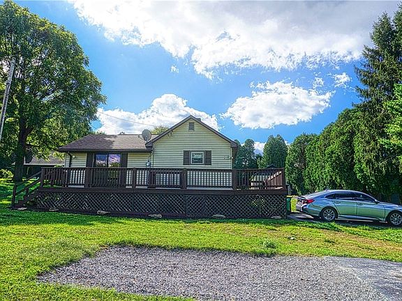 Great location, cute as a button with almost an acre of yard space and ready for the next owner! This 2 bedroom ranch style home offers an eat-in kitchen with plenty of cabinet space and pantry, living area with sliding door to the freshly painted large wrap around deck, spacious primary bedroom, updated full bathroom with tub/shower combo, and a second bedroom completes the main floor. A partial walk-out basement features the laundry area, high efficient furnace and brand new breaker box! A large deck wraps around the side and front of the home overlooking the large front yard, just under an acre! A shared driveway leads to the home with updates including new carpet, new 100 amp breaker box, new light fixtures, and wrap around deck freshly painted! Welcome home!